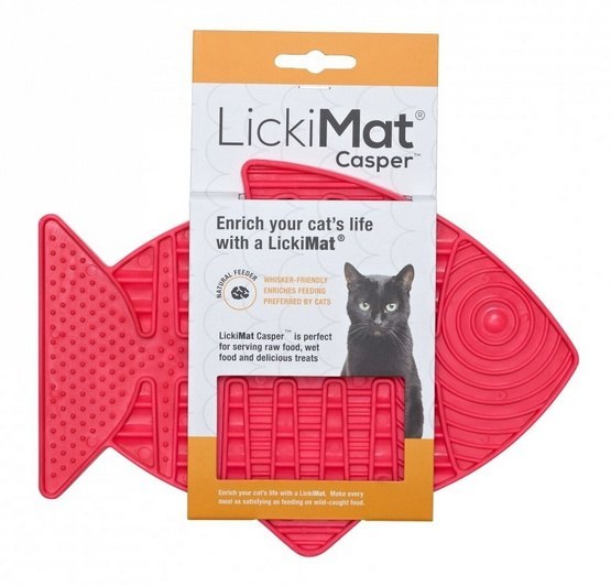 LickiMat Classic Casper to pierwsza mata do lizania zaprojektowana specjalnie dla kotów – w uroczym kształcie rybki. Jej płaska konstrukcja nie drażni wibrysów i pozwala spożywać pokarm w pozycji kucającej z pełnym widokiem na otoczenie, co zmniejsza stres i niepokój podczas jedzenia. Doskonale sprawdza się również dla mniejszych psów.